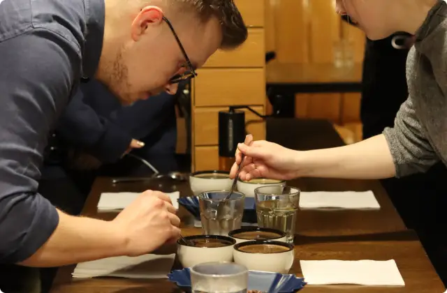Każdą partię testowaliśmy wraz z Dawidem i Tomkiem na miejscu z wykorzystaniem ich wody i sprzętu. Uważamy bowiem, iż sprawdzenie kawy w warunkach, w jakich będzie parzona z właścicielami lokalu, którzy najlepiej znają swoich gości, umożliwia nam najdokładniejsze poznanie ich preferencji i oczekiwań.
